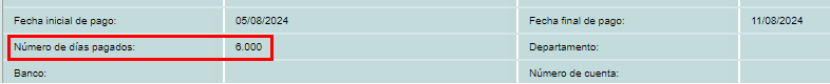En este ejemplo se indica que son 5 días laborados (incluido el domingo), un día de descanso y un día no laborado.