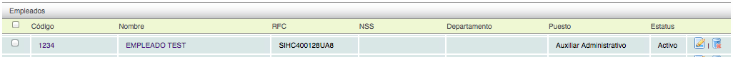 Seleccione el empleado a dar de baja dando click sobre el nombre, al realizar esta acción podrá visualizar la información general del mismo.