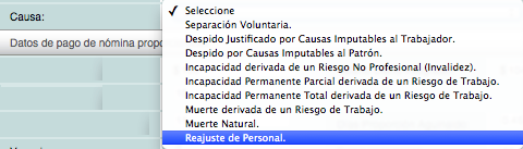 La "Causa" hace referencia al motivo de la separación laboral, es muy importante que seleccione la causa correcta ya que los cálculos se realizarán de acuerdo a este parámetro. De click sobre el botón para seleccionar la causa.