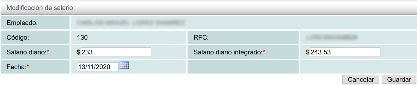 Se mostrará un cuadro con las opciones de cambiar el salario diario y el salario diario integrado.