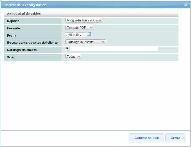 Se mostrará la ventana de configuración del reporte.