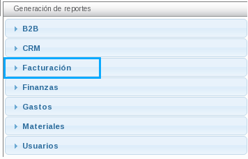 En el módulo, podrá encontrar las diferentes secciones de reportes, dé click en la opción "Facturación".