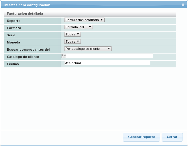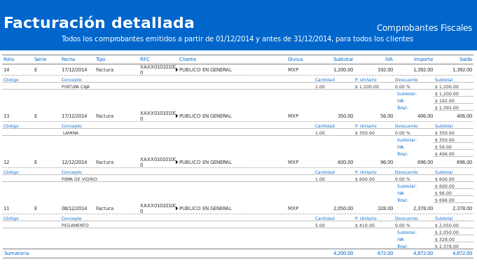 A continuación se desplegará la lista completa de reportes disponibles, dé click en la opción "Facturación detallada".