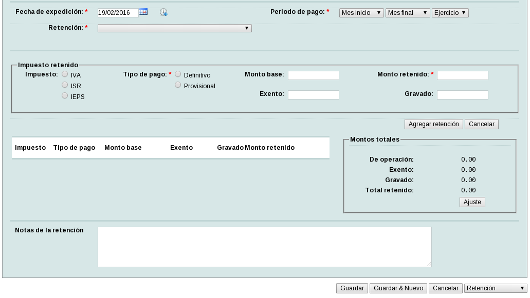 • Para finalizar dé click sobre el botón "Agregar retención".
