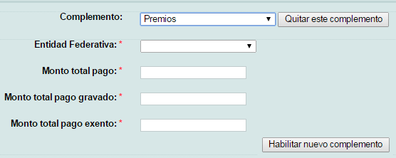 Dentro de esta sección dé click en el botón para seleccionar el complemento "Premios".