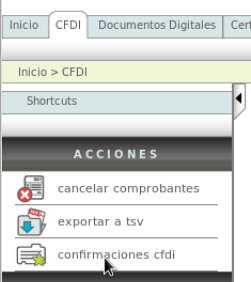 Go to the "CFDI" tab and click on the "Confirmaciones CFDI" option located in the "Acciones" menu.