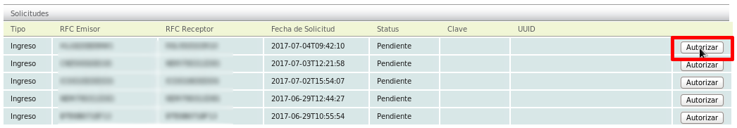 Click the "Autorizar" option on the receipt of your choice.