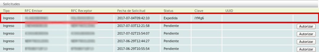 • Expedida. The confirmation key was generated but has not been used to stamp any CFDI.