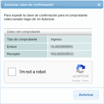 Click the "Autorizar" button to generate the confirmation key.