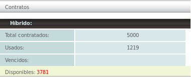 Se mostrarán los contratos que tenga usted , y en cada uno podrá ver el total de timbres contratados, los usados, los vencidos y los disponibles.