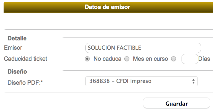 En esta sección usted podrá establecer la caducidad del ticket, es decir, definir el tiempo que un ticket podrá autofacturarse despues de ser emitido.