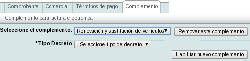 Ya capturada la información de su comprobante en la pestaña "Facturación", vaya a la parte superior de su formulario y seleccione la pestaña "Complemento".