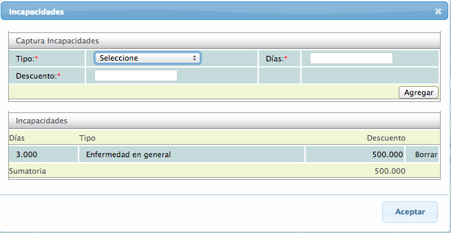 Las incapacidades al igual que en el caso de las percepciones “Horas Extra” requieren de