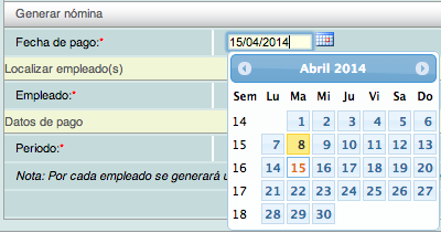 Al seleccionar el periodo tendrá que definir la fecha inicial y final de pago así como los días a pagar.