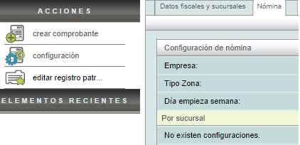 Una vez dentro de esta sección diríjase a la opción "Datos fiscales, sucursales y registro patronal", dentro de la misma encontrará la pestaña "Nómina".