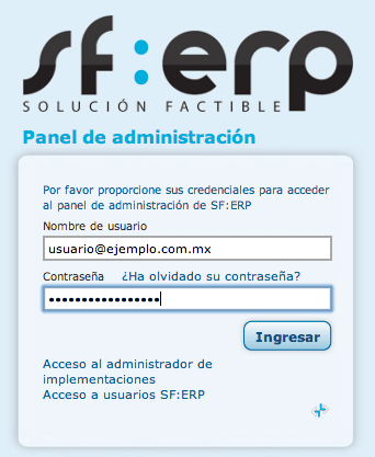 Su ejecutivo de Ventas le asignará el usuario y contraseña para el inicio de sesión en el sistema, así mismo le indicará la liga de ingreso, usted podrá ingresar desde el navegador de internet de su preferencia.