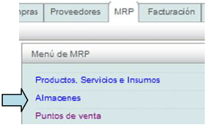 Para registrar el almacén diríjase al módulo "MRP" y seleccione la opción "Almacenes".