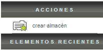 Ahora en el menú "Acciones" seleccione la opción "Crear Almacén".