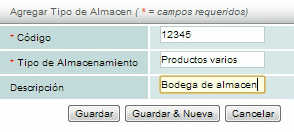 *Tipo de almacén. Usted puede definir qué tipo de productos registrará en su almacén, de este modo podrá diferenciar fácilmente cada uno de sus almacenes.