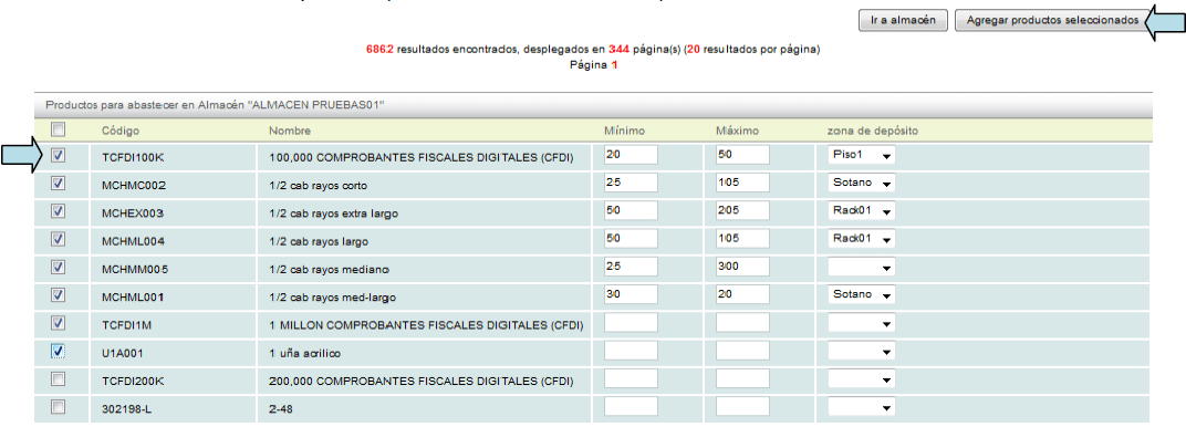 Cuando termine, dé click en el botón "Agregar productos seleccionados" de este modo su almacén contará con productos disponibles para su "Punto de Venta".