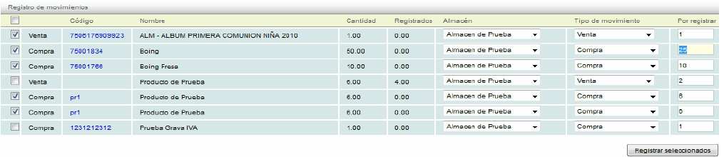 Cuando termine, dé click en el botón "Registrar seleccionados" de este modo los inventarios serán afectados.