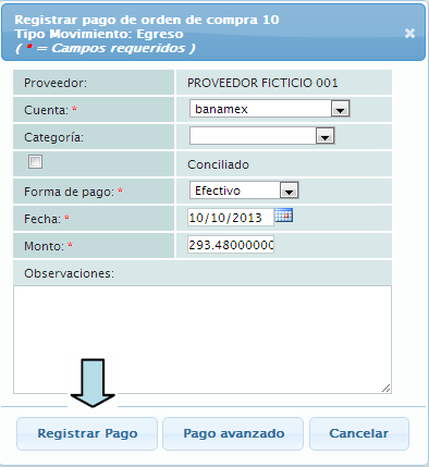 A continuación ingrese la información requerida, cuando termine dé click en el botón "Registrar Pago", cabe mencionar que puede registrar pagos parciales.