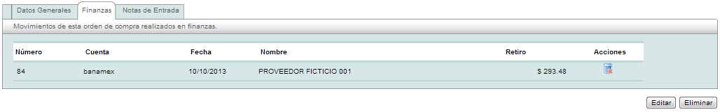 Una vez realizado el pago, la orden de compra mostrará el saldo según el pago registrado.