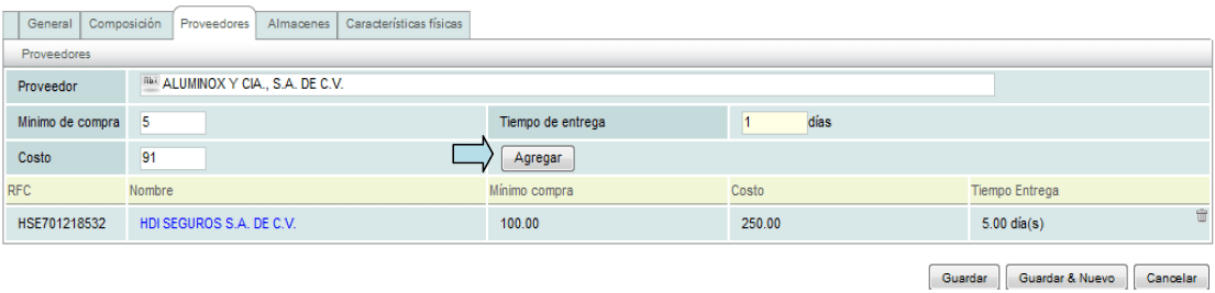 También, puede asignar uno o más proveedores al producto registrado, de este modo el resurtido del producto es más sencillo.