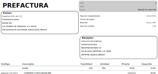 Así mismo la prefactura le permitirá realizar diferentes acciones, ya sea el envío del documento hasta descargar un PDF genérico con la información, la cual usted puede hacer llegar a su cliente para su autorización y posterior facturación.
