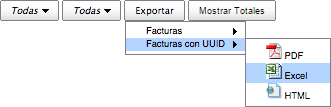 También es posible exportar la información filtrada en formato: PDF, XLS o HTML. Para ello dé click en el botón "Exportar" y seleccione el formato deseado.