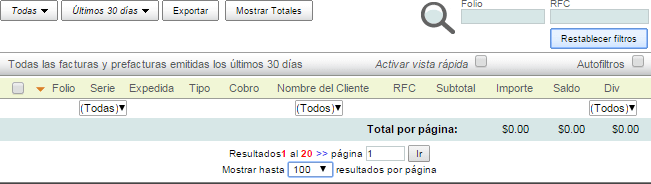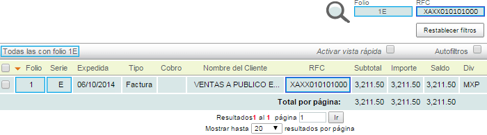 Filtrado por Folio o RFC