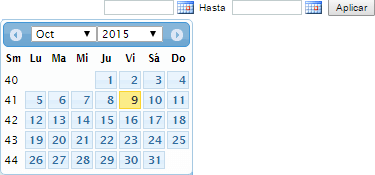 En el caso de haber seleccionado la opción de “Rango de fechas” se habilitarán dos campos donde deberá seleccionar la fecha inicial y final, una vez que seleccione el rango dé click en “Aplicar” para que le muestre la información requerida.