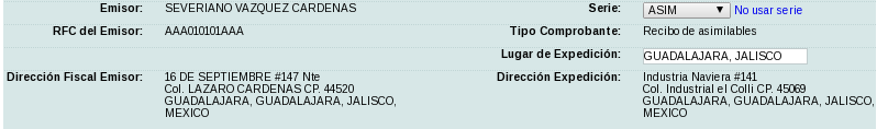 En esta seccion encontrará los datos del emisor del comprobante de asimilable.