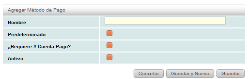 • Nombre: ingrese el nombre del nuevo método de pago.