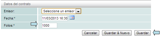 Seleccione el emisor al que se asignará el contrato, la cantidad total de timbres que desea y dé click en el botón "Guardar".