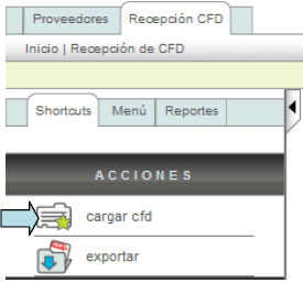 Para realizar la validación del comprobante ingrese a la pestaña Recepción CFD y dé click en el botón Cargar CFD ubicado en el menú Acciones.