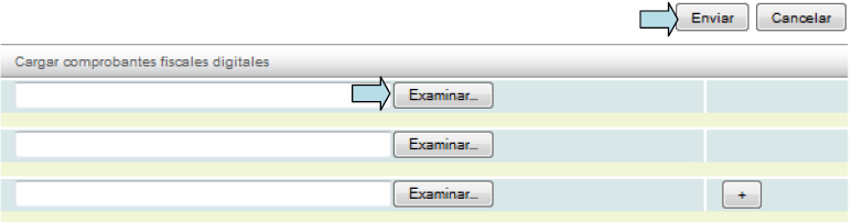 En el siguiente Panel usted podrá cargar uno o más comprobantes, tan solo seleccione la ruta en la que se encuentra el archivo XML dando click en la opción Examinar. Una vez cargados todos los comprobantes dé click en el botón Enviar.