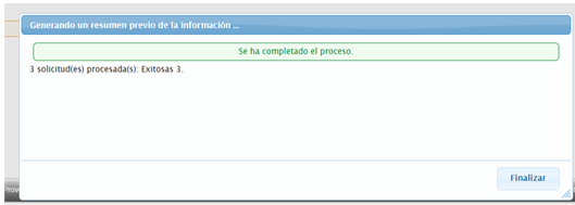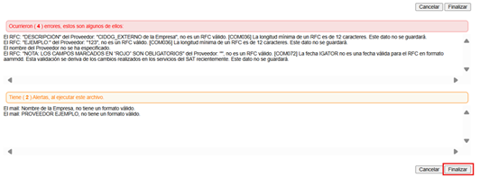 Tras ello, se mostrarán los errores de la comparativa de los campos, luego, de click en el botón "Finalizar".