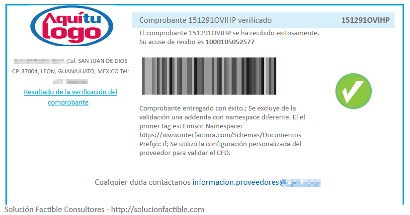 Luego de recibir el correo por parte de Solución Factible, le notificarán con un correo los resultados de la validación del comprobante enviado.